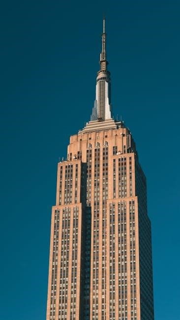The Empire State Building‚ a towering 102-story skyscraper in Midtown Manhattan‚ remains an enduring symbol of New York City. Completed in 1931‚ it quickly became a global icon‚ captivating imaginations and dominating the skyline. Visitors can ascend to the 86th and 102nd-floor observatories for breathtaking panoramic views of the city and beyond.