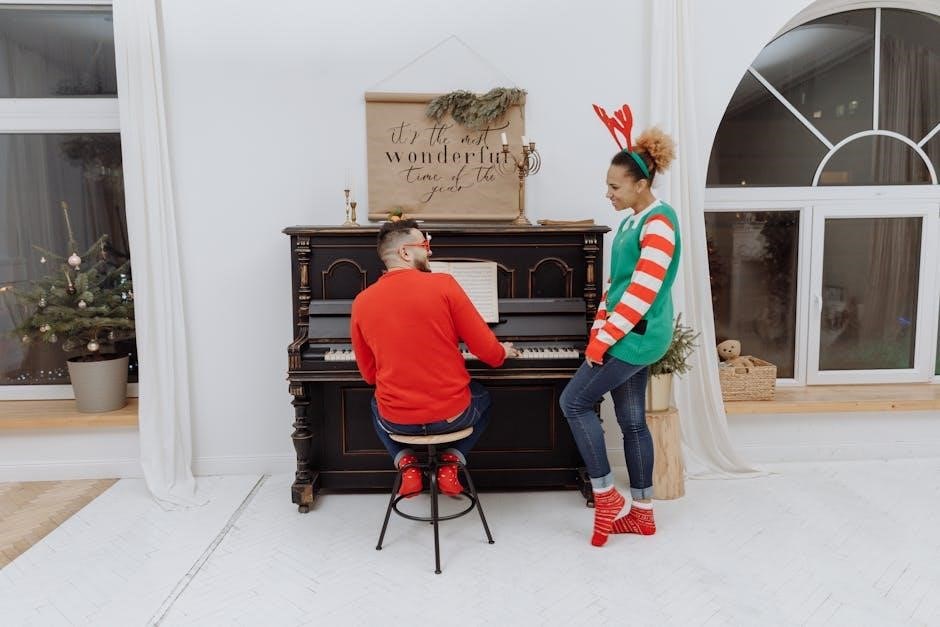 Beyond piano and guitar, “Happy Birthday to You” is widely arranged for other instruments, ensuring its universality. For example, accordion arrangements offer a lively, festive feel, while ukulele versions provide a soft, intimate tone. Woodwind instruments like flutes or clarinets can play the melody with ease, adding a light, airy texture. Brass instruments, such as trumpets or trombones, can deliver bold, celebratory renditions. String ensembles, including violins or cellos, bring elegance to the piece. Even harmonicas and xylophones have been used to create unique interpretations. These arrangements often maintain the song’s simplicity but adapt it to suit the instrument’s capabilities. Musicians can find Happy Birthday sheet music PDF tailored for specific instruments, making it accessible to diverse performers. Whether for a solo performance or an ensemble, these adaptations keep the song fresh and engaging across different musical settings.